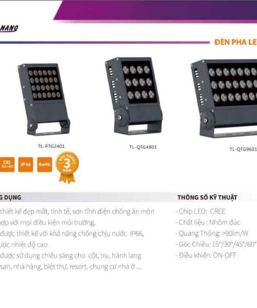 Đèn pha LED là thiết bị chiếu sáng sử dụng công nghệ chip LED hiện đại. Đáp ứng được đặc tính hoạt động ngoài trời, tiếp xúc với nắng, khói, bụi bẩn và chống nước. Thiết kế phù hợp giúp đèn hoạt động ổn định và bền bỉ hơn.