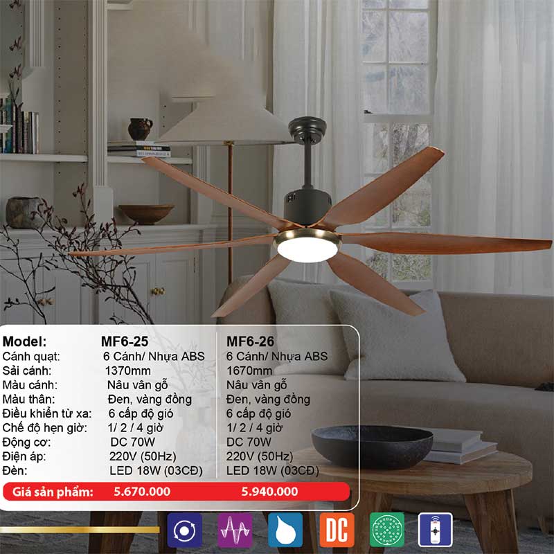 Thông số kỹ thuật QQuạt trần đèn giá tốt MF6-25
