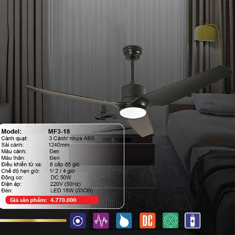 Thông số kỹ thuật Quạt trần đèn Mountain Fan MF3-18